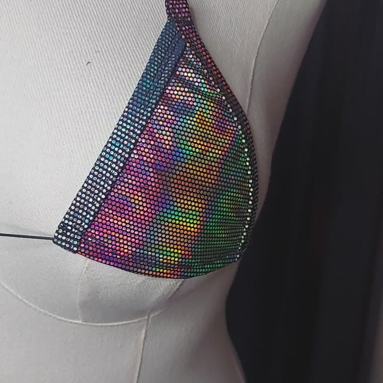 🔥 Holographic Heat – Skimpy Black Iridescent Bikini Set | Strappy 2PC for Rave, Pole & Stage Slay